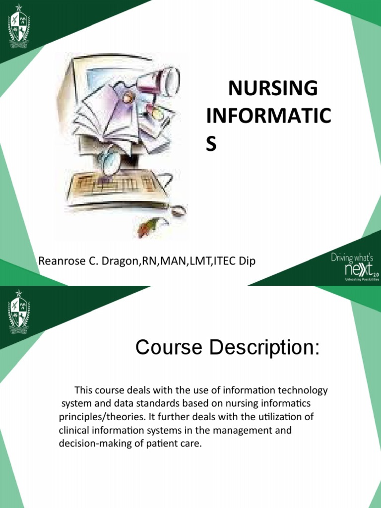 Nursing informatics can also be useful in a physicians clinic. Nursing Informatics is a specialty that integrates nursing science computer science and information science to manage and communicate data information and knowledge in nursing practice. The past present and future of clinical computing including major factors resulting in the early hospital information systems HIS and decision support systems DSS in the United States current advances and issues in managing clinical.